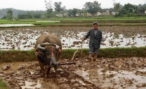 農(nóng)歷三月,草木發(fā)芽,春耕生產(chǎn)開始了。搶水整田是莊稼人一春的要務,把犁耙搬出去,把牛趕出去,然后一聲吆喝,打破鄉(xiāng)村田野的寂靜。一春的辛苦勞作,便開始了。