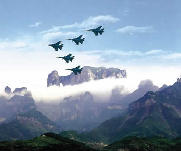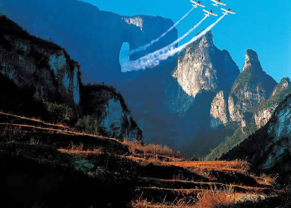 天門洞上空特技飛行表演