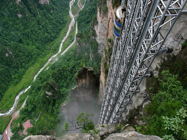 世界第一梯——百龍?zhí)焯?/P> 百龍電梯解說詞(上行) 電梯上行各位來賓:大家好!歡迎各位乘坐世界最高的全暴露戶外觀光電梯——百龍電梯。我是電梯講解員,很高興為您服務! 百龍電梯運行高度326米。由154米山體內堅井和172米的地上鋼結構井架給成,并以3M/S的速度勻速運行。因此,大家的行程只需1分58秒。目前大家正處于豎井部分,如果有耳鳴的現(xiàn)象產生,您可以通過打哈欠或張開嘴來減輕這種負擔,有點恐高的朋友可以稍微站后面一點。 現(xiàn)在出現(xiàn)在大家面前的座座石峰拔地而起,如同士兵列隊一般。這兒就是張家界的著名景點之一——神兵聚會。相傳土家族的起義領袖向王天子在此召集48位部將商討軍事而得名。因此也有人把這稱為四十八將這巖。 隨著電梯的往上運行,大家還能發(fā)現(xiàn)對面山頂上居住得有人家。他們都是當?shù)氐木用。世世代代在那兒耕種生活。因此也稱為空中田園。 各位來賓,電梯已經到站了。請您拿好隨身物品。依次下電梯,祝您旅行愉快,再見! 百龍電梯解說詞(下行) 電梯下行各位來賓:大家好!歡迎乘坐百龍電梯。 現(xiàn)在大家居高臨下能夠將水繞四門的全景盡收眼底,而且在對面的山頂上還有一座座白色的小房子。那里居住著當?shù)氐霓r民,他們在這兒耕種生活,所以也稱“空中田園”。 而且隨著電梯的下行,在大家對面的那大片山峰上去像士兵列隊一樣,這就是張家界的著名景點之一——神兵聚會。相傳是土家族的起義領袖向王天子在此率兵起義的地方,所以也把這兒稱為四十八將軍巖。 現(xiàn)在大家是在可以觀光的部分,等會兒還要下到豎井里面,如果有耳鳴的現(xiàn)象,您可以通過打哈欠或者張開嘴來減輕這種負擔。 現(xiàn)在大家正處在一個人工開鑿的山體豎井里,百龍?zhí)焯葸\行總高度為326米,運行速度3m/s,因此大家的行程只需1分58秒,這個豎井主要對電梯起穩(wěn)固和保護的作用。當時在豎井施工中我們采用了從下往上爆破的方法。使周圍的山體和植被得到了很好的保護,百龍電梯工程門類繁多、施工難度大,因此有“工程建設博物館”之稱。由于它是世界上最高、速度最快、載重量最大的全暴露戶外雙層觀光電梯,所以也被成為中國的艾菲爾鐵塔。各位來賓,電梯即將到站,請做好下電梯的準備,祝您旅途愉快,再見! 百龍電梯位于世界自然遺產張家界武陵源風景區(qū)。工程分布在4.5公里,垂直高差385米的核心景區(qū)。電梯運行高度326米,主體由154米山體豎井和172米貼山鋼結構井架等組成,采用三臺雙層全暴露觀光電梯并列分體運行。是連通森林公園、金鞭溪、水繞四門到袁家界、烏龍寨、天子山的重要觀光交通設施。百龍?zhí)焯莨こ毯陚ァ⒐に噺碗s,施工驚險,堪稱“世界工程奇觀”。它的建成創(chuàng)造了三項基尼斯世界紀錄。 游客可乘電梯上、下、往返,觀賞袁家界、天下第一橋等風光,也可以乘電梯至天子山觀景。