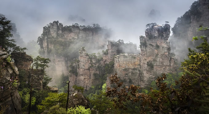 楊家界雪景 作為世界自然遺產(chǎn)武陵源四大核心景區(qū)之一的楊家界景區(qū),地勢(shì)險(xiǎn)要,風(fēng)景絕美,跟張家界、天子山、索溪峪比較,其中的地質(zhì)地貌一部分相同外,又有其獨(dú)特的資源優(yōu)勢(shì),擁有全球罕見(jiàn)的峰墻群奇光。乘坐在舒適的楊家界索道里,可以盡情體驗(yàn)“會(huì)當(dāng)凌絕頂,一覽眾山小”的居高臨下與動(dòng)感,360度暢游夢(mèng)想般的楊家界仙界,俯瞰“近在咫尺”的千山萬(wàn)壑,山舞銀蛇,千嬌百媚的絕美“峰墻”盡收眼底,無(wú)限風(fēng)光在險(xiǎn)峰,數(shù)十道氣勢(shì)如虹的石墻,一排排層巒疊嶂,相對(duì)平行而立,高矮參差不齊,宛如“天然長(zhǎng)城”,真是美輪美奐,絕景天賜,不得不讓人驚嘆大自然的璧山開(kāi)地之功。