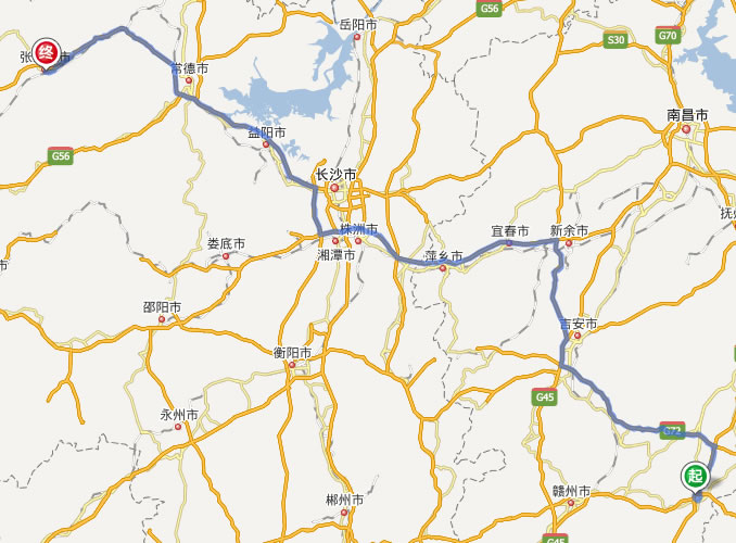 左右,沿途經過瑞金——吉安——新余——宜春——萍鄉(xiāng)——株洲——長沙——益陽——常德——慈利——張家界市。