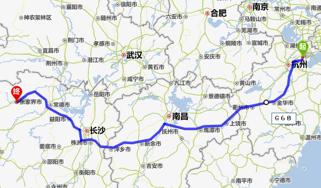 海寧去張家界自駕車自助游線路圖全程高速):