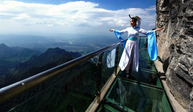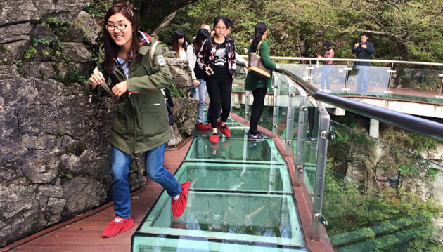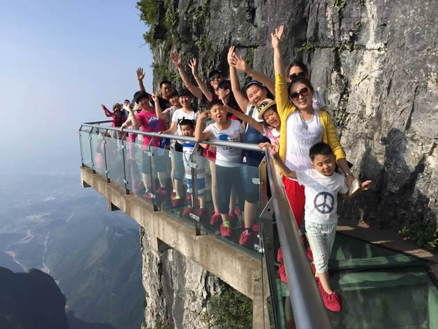 【張家界大峽谷玻璃橋】號稱世界最長、最高的全透明玻璃橋,玻璃橋總長430米、寬6米,橋面距谷底約300米,可站800人。橋面全部采用透明玻璃鋪設(shè),橋中心有全球最高的蹦極臺(tái),整個(gè)工程無鋼筋支架,是一種全玻璃結(jié)構(gòu)的橋梁。玻璃橋建成后,將成為世界首座斜拉式高山峽谷玻璃橋;并創(chuàng)下世界最高最長玻璃橋、首次使用新型復(fù)合材料建造橋梁等多項(xiàng)世界之最!