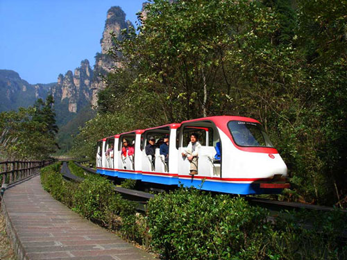 下 午:可選擇步行(步行下山一般時間為2小時左右)或者乘坐天子山索道(索道票72元/人自行購買)下山,游覽巧奪天工的--【十里畫廊】,可以選擇步行或者乘坐觀光小火車游覽十里畫廊(觀光小火車票單程38元/人自行購買),沿途欣賞天臺三姐妹峰、向王觀書、黃昏戀、壽星迎賓、采藥老人、錦鼠觀天、猛虎嘯天等景點(diǎn);